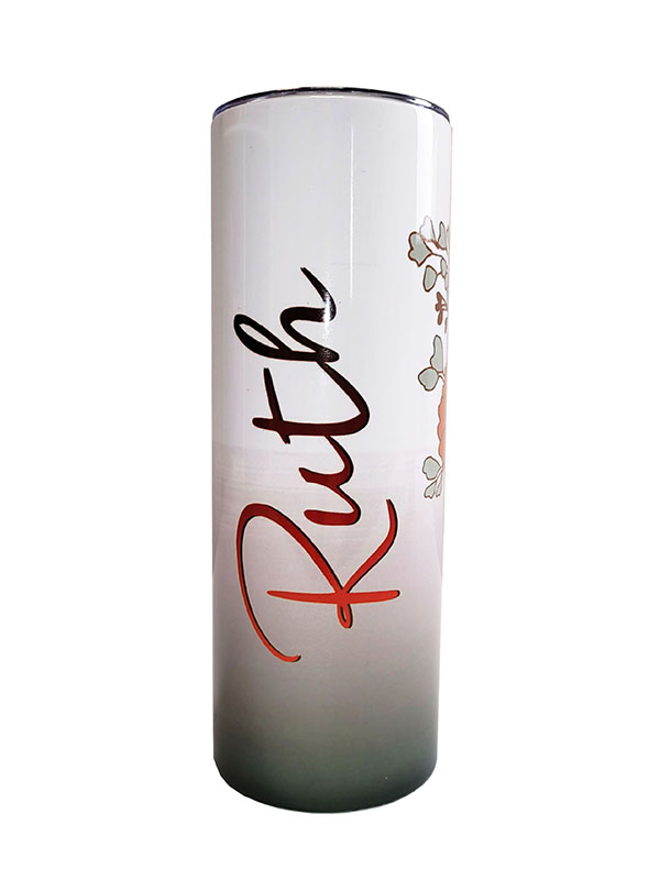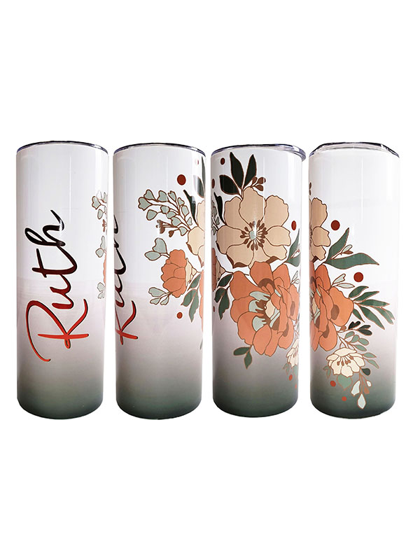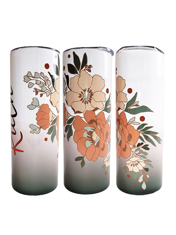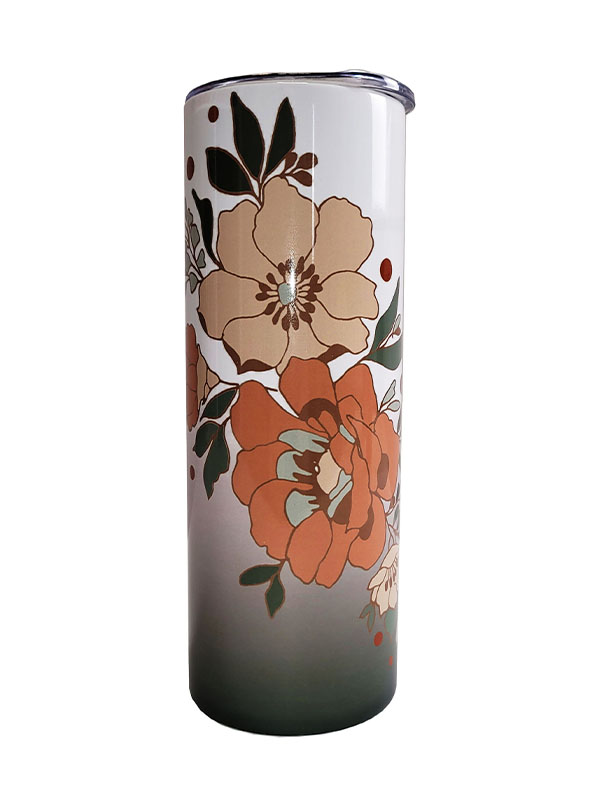 Adorning the surface of the tumbler are delicate clematis flowers, intricately detailed to capture their natural beauty. The flowers are rendered in slightly darker shades of beige, providing a harmonious contrast that enhances the overall design. The clematis motif adds a touch of nature and elegance, making the tumbler not only a practical item for everyday use but also a beautiful piece of art that can elevate any setting.