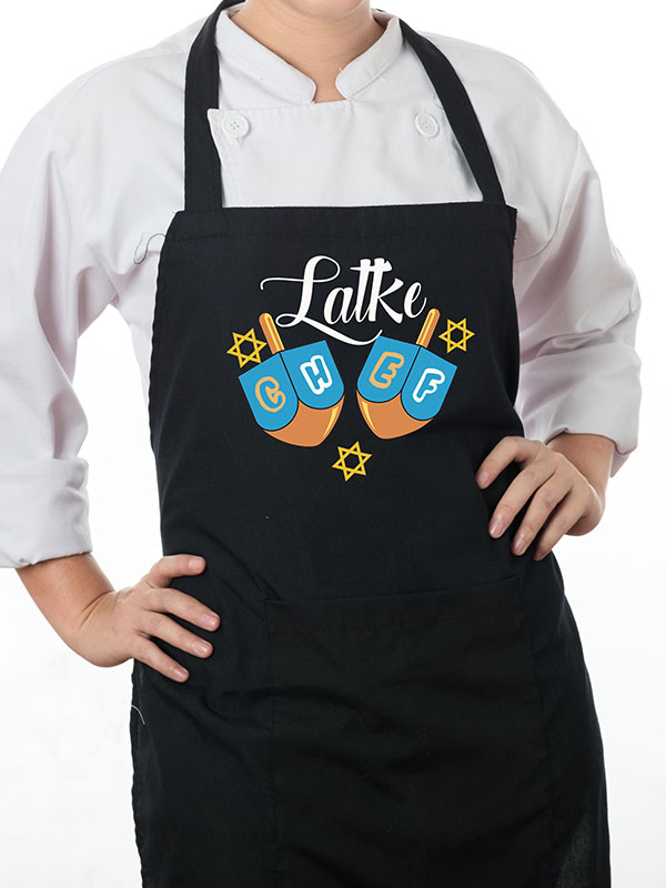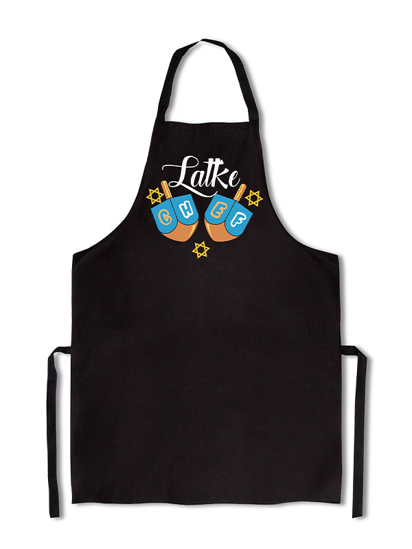 Cook up some Hanukkah magic with our festive ‘Latke Chef’ apron, decorated with colorful dreidels and bold, playful text. Designed for the latke chef in your family.